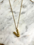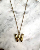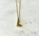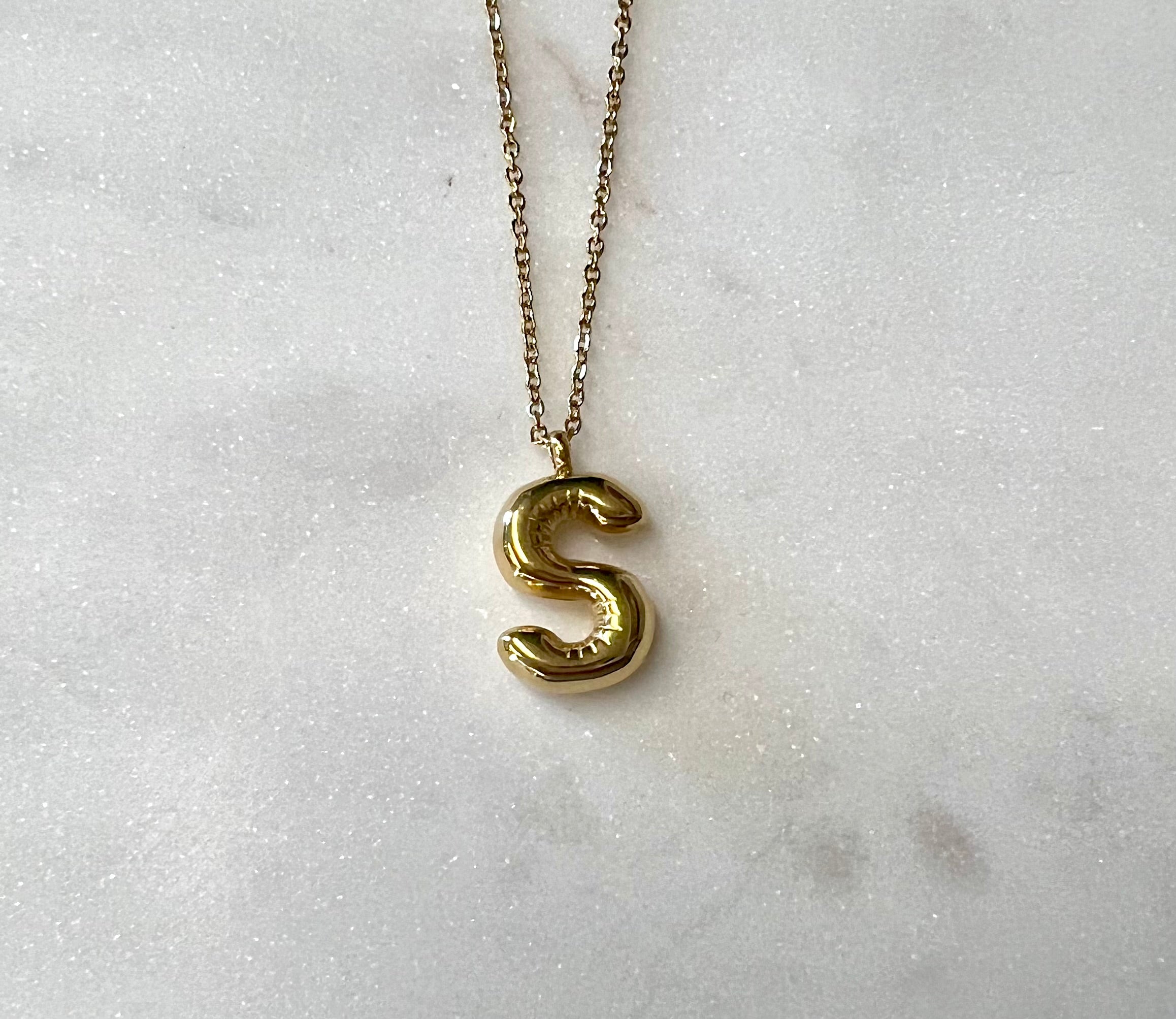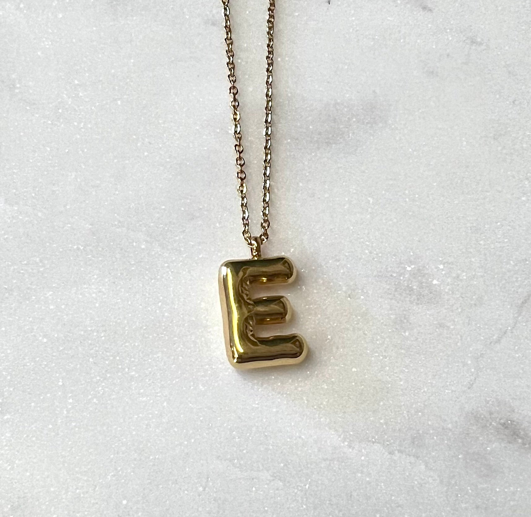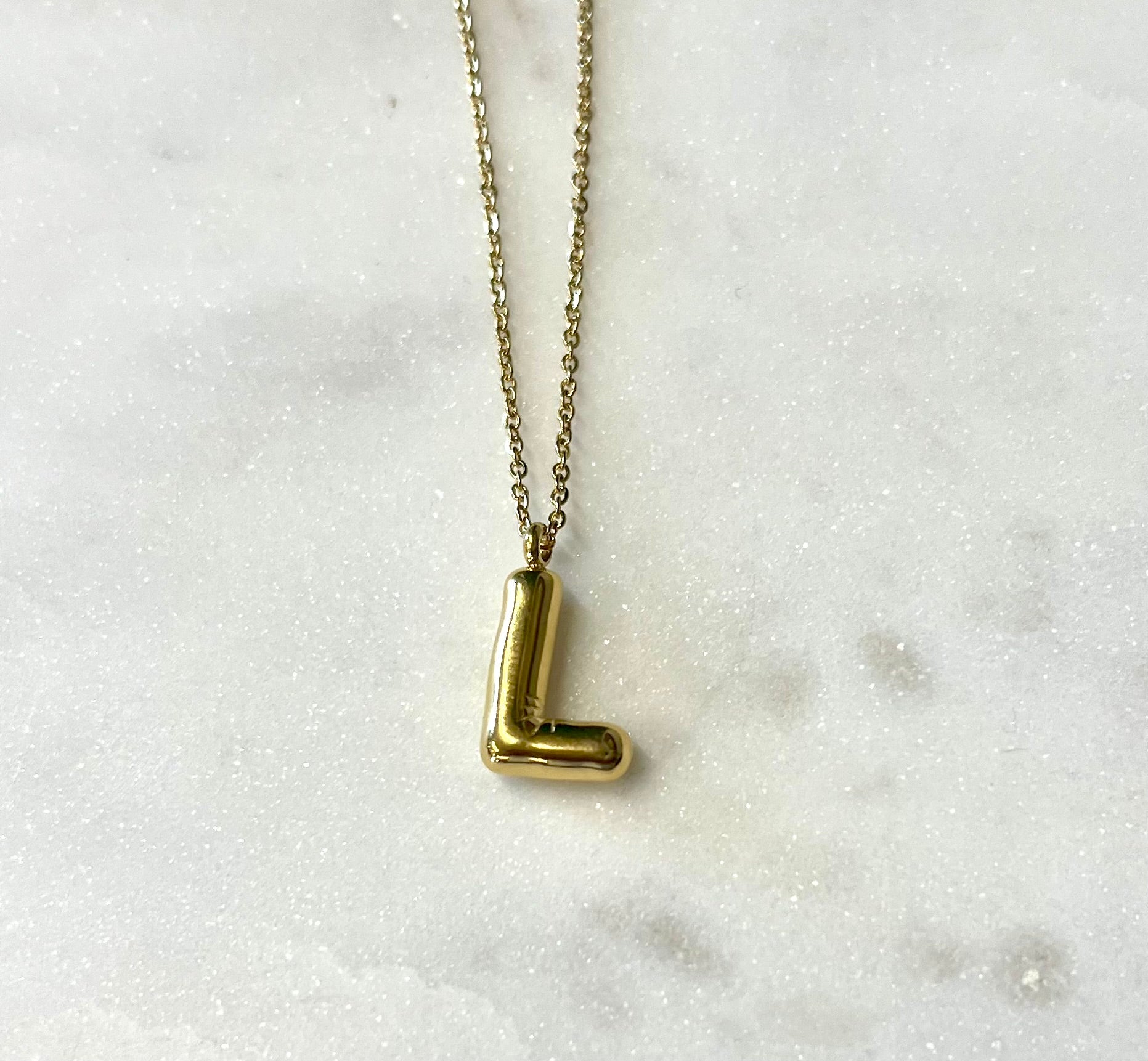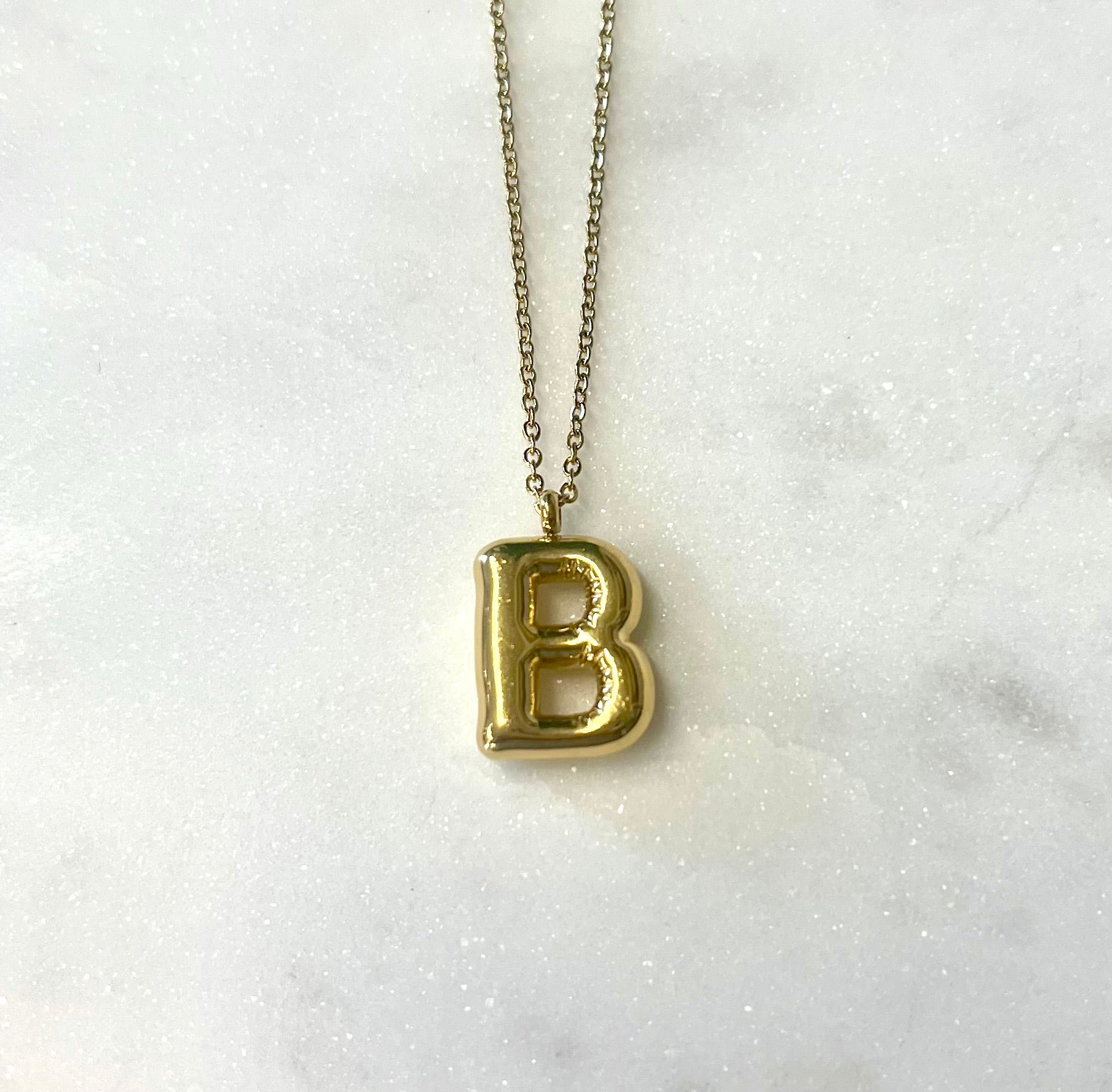Personalize your style with our stunning bamboo initial necklace featuring large balloon-like pendants. Size 15x18mm, stainless steel, 18k gold PVD plated, and tarnish-free. Includes a 17.5-inch chain. Elevate your look with a touch of individuality.