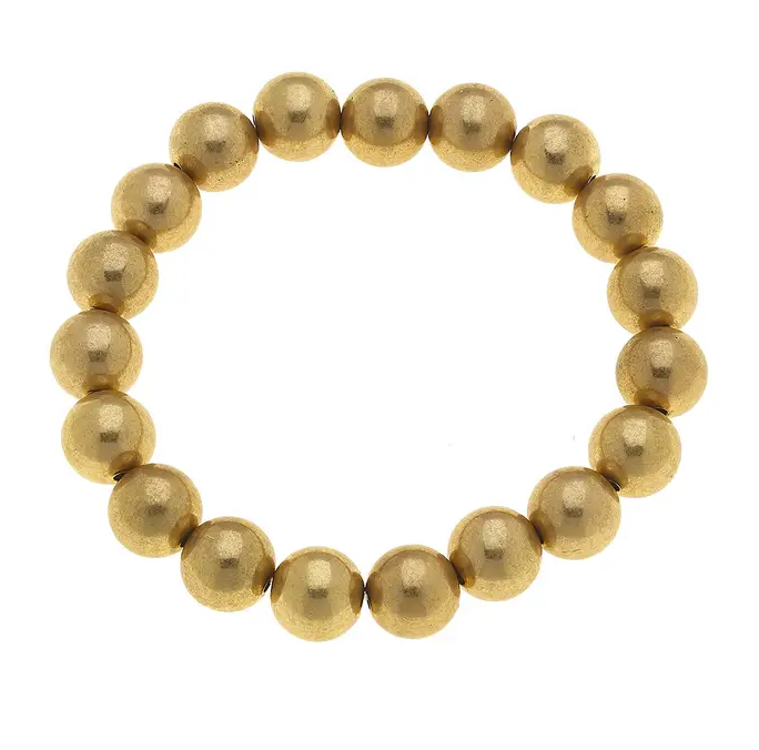 10mm Ball Bead Stretch Bracelet in Worn Gold