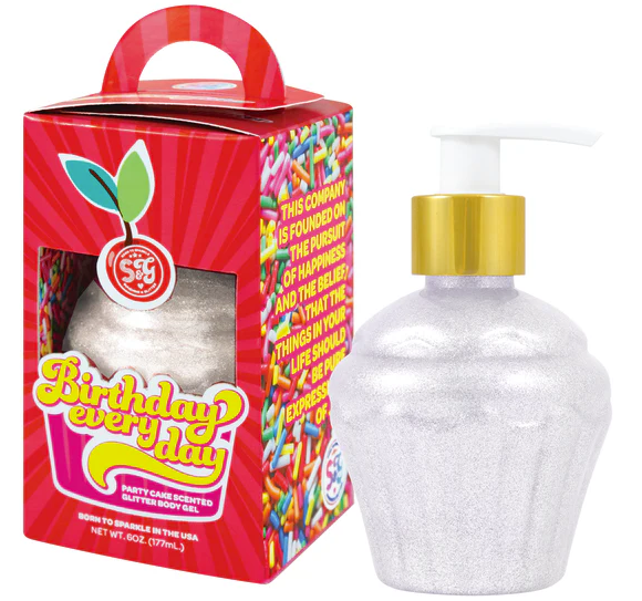 Birthday Everyday Party Cake Scented Holo-iridescent Glitter Body Gel 6 oz.