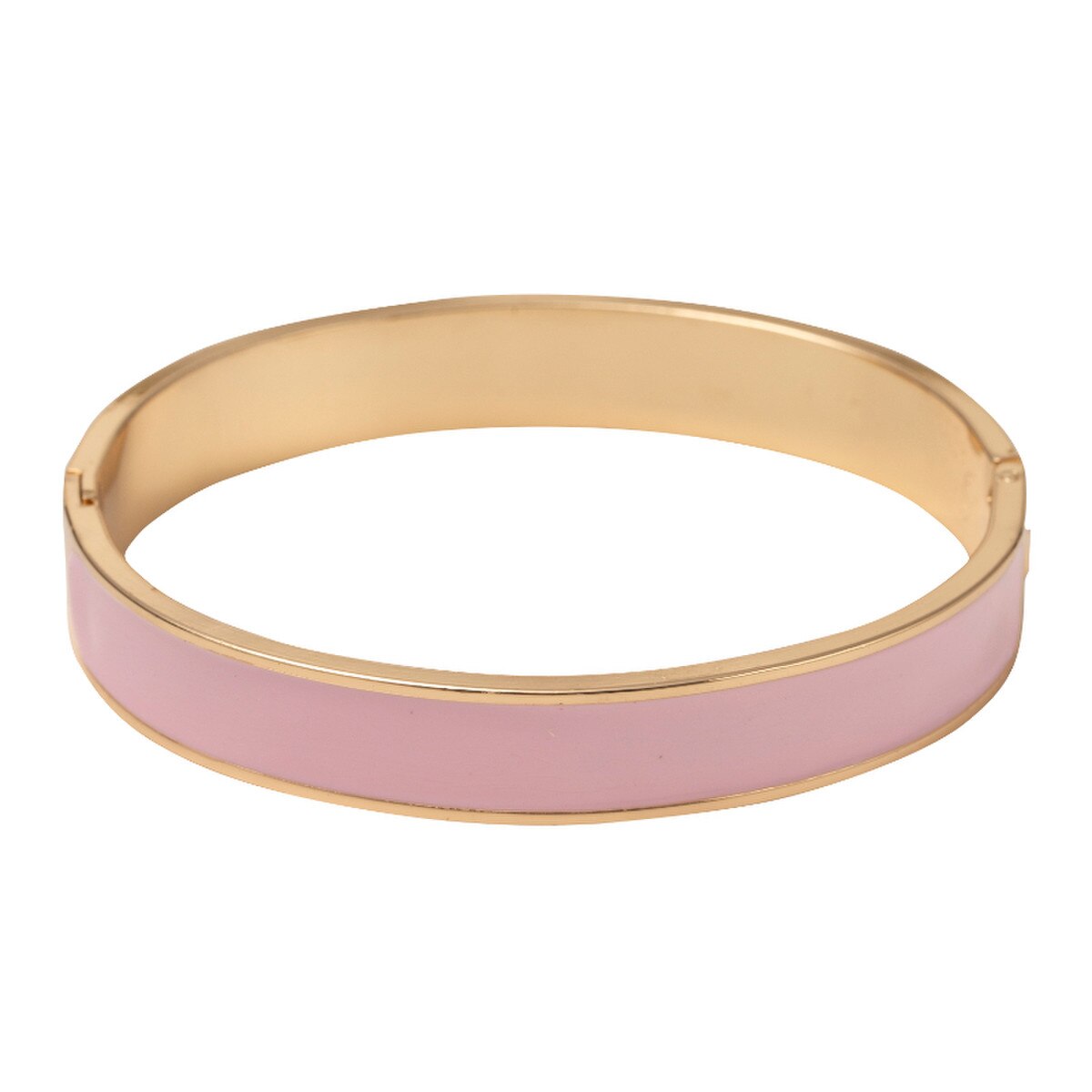 Add a splash of color to your outfit with this Gold Hinge Bracelet with Pink Enamel.