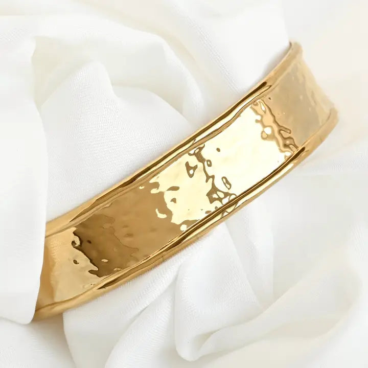 Hammered Cuff Bracelet - Waterproof Gold Statement Cuff
