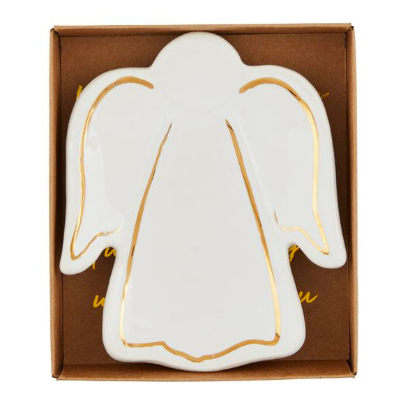 The Long Outline Wing Angel Tidbit Dish is a stunning piece made from high-quality stoneware. Its unique angel shape adds a touch of elegance and charm to any table setting. The dish features a hand-painted electroplate rim, which adds a beautiful and intricate detail to the overall design. Made from dolomite, this tidbit dish is not only visually appealing but also durable and long-lasting. With dimensions of 5" x 4 1/2", it is the perfect size for serving small snacks, appetizers, or desserts. Whether you're hosting a formal dinner party or simply enjoying a casual gathering with friends and family, this angel tidbit dish is sure to impress your guests and elevate your dining experience.