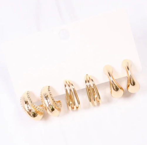 Have a great variety of hoops to choose from with this earring set. Each style has a different design, and they all pair well with any look.