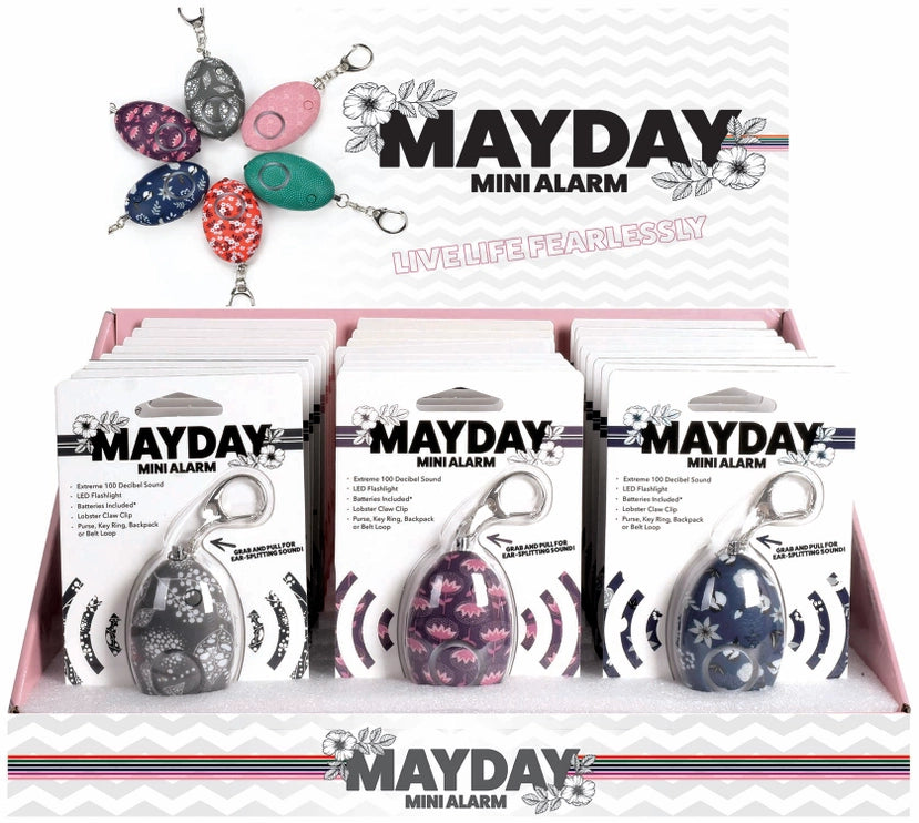 Deter predators wherever you go! These colorful personal safety alarms are the practical accessory everyone needs. Pull the alarm pod from its keychain to emit an ear-splitting 100 decibel sound! MAYDAY also has a push-button LED flashlight for emergencies and small spaces. Lobster claw clip attaches easily to purses, back packs and belt loops for easy access when you need it. Great for campus life, solo trips, late nights and parking lots!