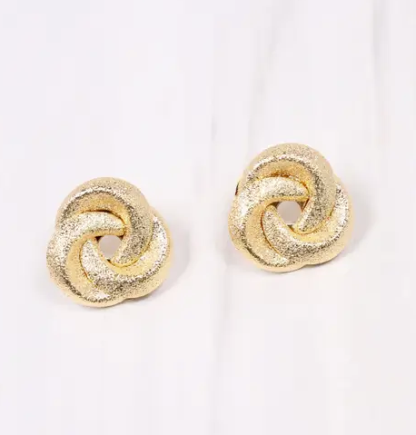 This knot style earring dresses up any look for any occasion. It has a shiny textured finish and is on a post back.