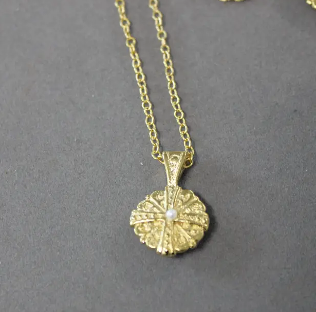 Medallion Cross Pendant with Tiny Pearl