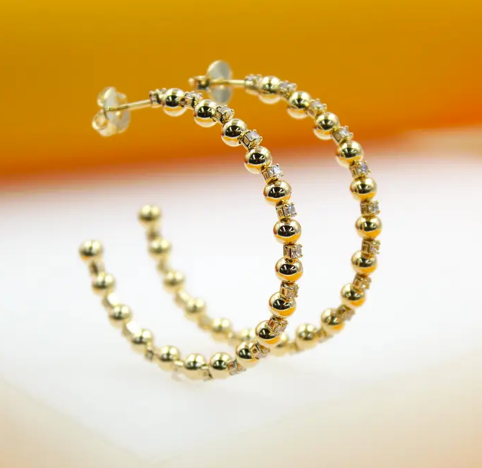 18K Gold Filled Zirconia Beaded Open Hoop Earrings