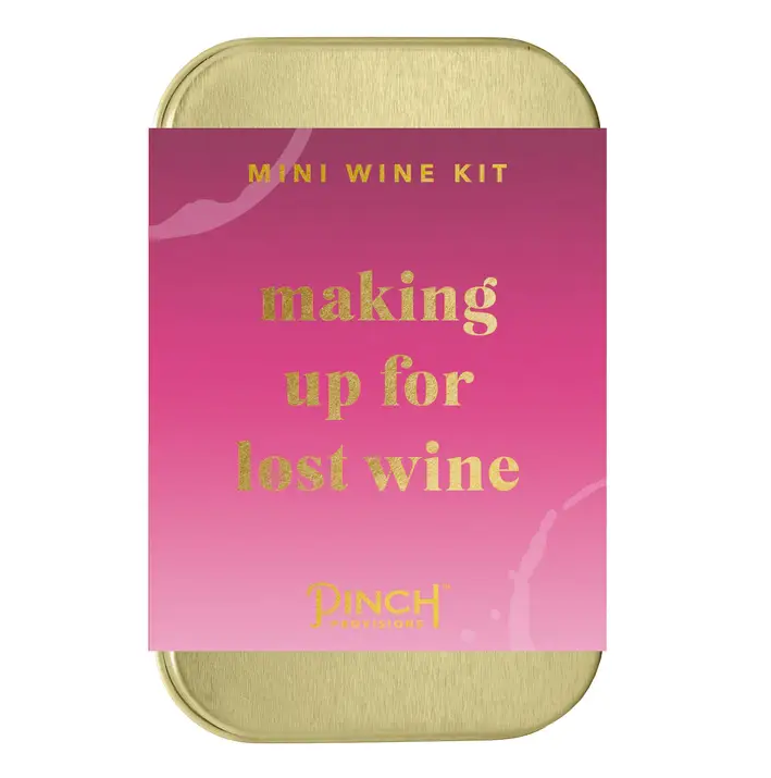 Make up for lost wine with the new Mini Wine Kit by Pinch Provisions. This little kit for wine lovers contains 5 essentials: wine cleaning towelettes (for teeth), stain remover, pain reliever, electrolytes, and a decision coin (keep pouring vs. last glass). Pair it with a bottle of wine for the perfect gift!