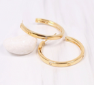 This shiny metal hoop earring is accented with circular etchings and CZs for a classic and fashionable look.