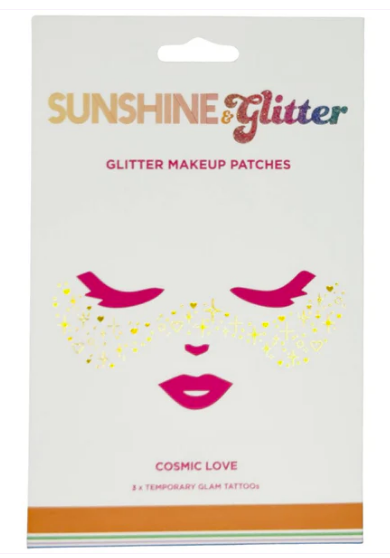 Radiate universal charm with the Sunshine & Glitter Face Tattoo - COSMIC LOVE 3-pack.